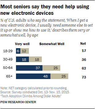 The patient kiosk solutions improve patient intake and moreover offers the functionality of voice recognition, protected patient identification and are handicap accessible. Patient kiosks can be the future of health care as they are highly flexible and easily manageable however we need to see both sides of the coin. Some patients may see technology as a barrier. Older patients may feel uncomfortable and have inhibitions using a kiosk and may prefer to fill out intake forms in writing or may require assistance in using it. The graph below highlights this fact.