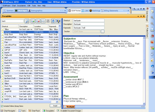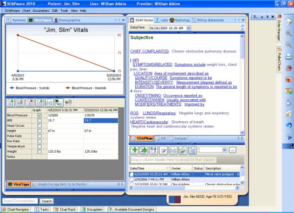 The SOAPware Electronic Medical Records allows physicians to document encounters with ease. The software features a medical dictation program as well, allowing physicians to chart and making notes by dictating to the software. SOAPware is equipped with pre-built templates that lie relevant to several specialties, their symptoms. The templates are downloadable and can also be customized by providers what they might be looking for at the point of care. With SOAPware providers can also send patient instructions and referral letters to other doctors/ specialists. Users can print prescriptions using Electronic Medical Records.
